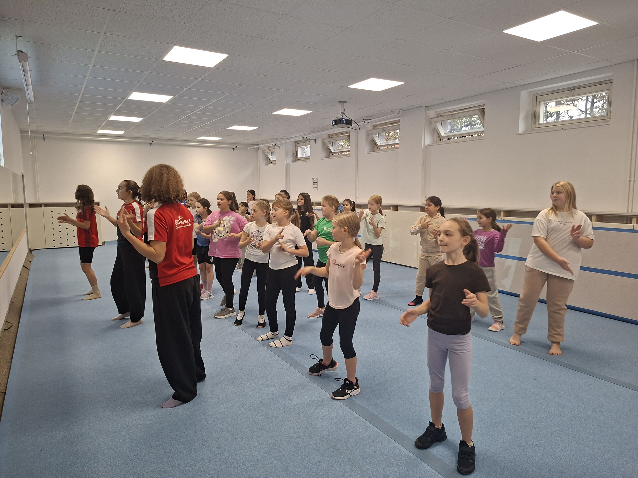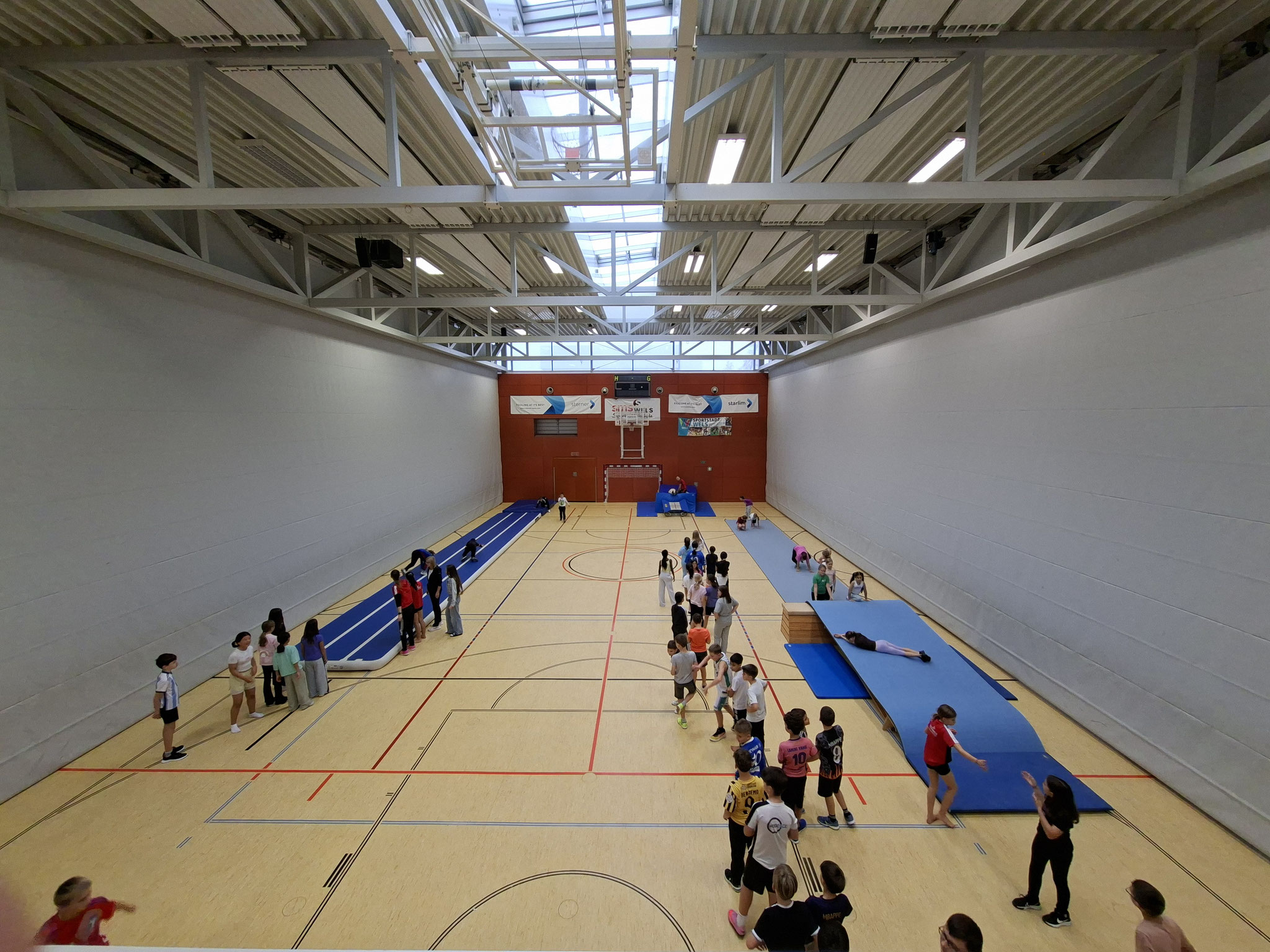 Unsere 4.Klassen verbrachten einen spannenden Sporttag in der Sportmittelschule Wels. Ein Tag voller Bewegung, Action und Spaß wartete auf die Kinder: Ob Ballsport, Turnen oder Tanzen – es gab