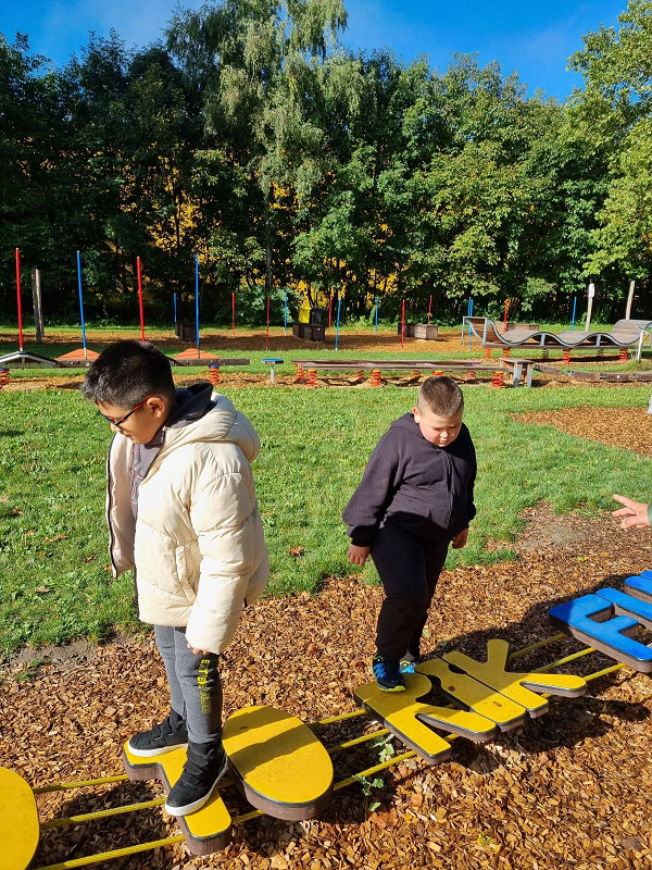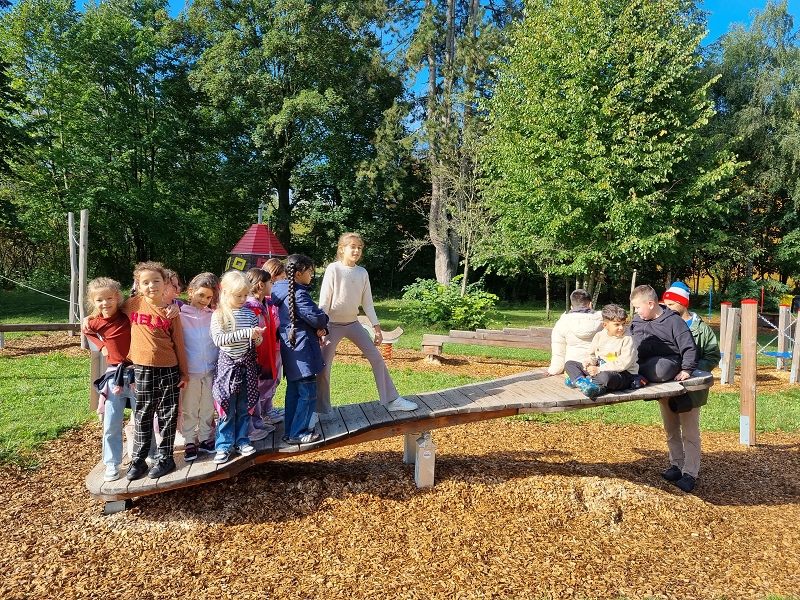 Pünktlich nach der Jause kam die Sonne hervor und zauberte allen ein Lächeln ins Gesicht. Gestärkt und voller Energie ging es danach in den Motorikpark Wels, wo Geschicklichkeit, Balance und Teamgeist gefragt waren.
