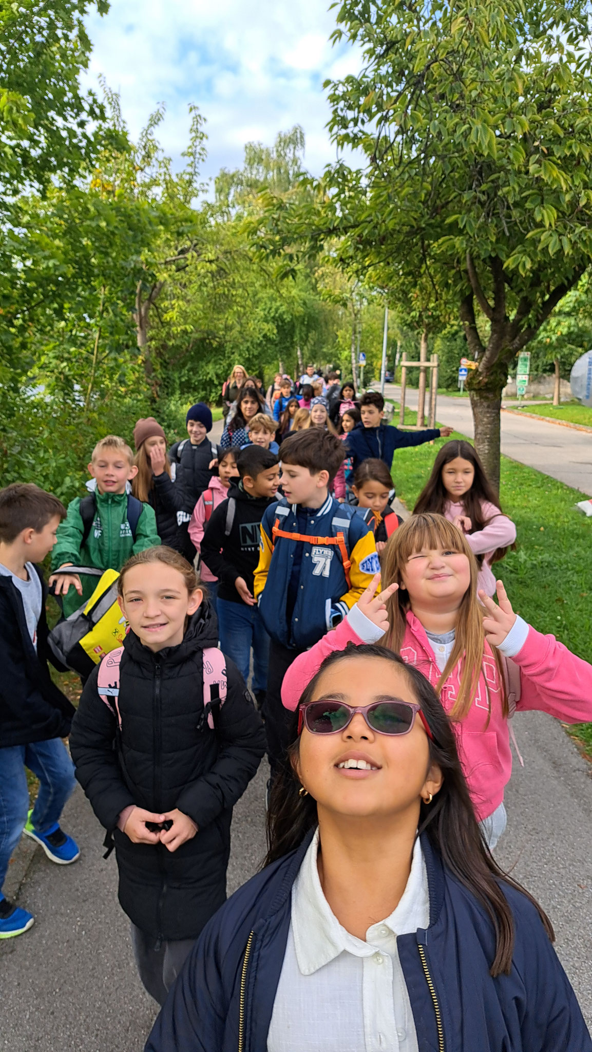Und natürlich: Kein Abenteuer ohne Beweisfoto! Das Gruppenbild zeigt tapfere Kinder, eine durchschwitzte Lehrerin und mindestens ein schiefes Lächeln.