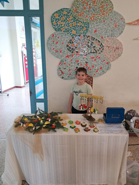 Beim Verkaufsstand am Elternsprechtag zeigten die Kinder nicht nur ihre Kunstwerke, sondern auch ihr Organisationstalent. Besonders unser Top-Verkäufer überzeugte mit großem Engagement und einer Beratung, die keine Wünsche offenließ – mit Begeisterung, Freundlichkeit und echtem