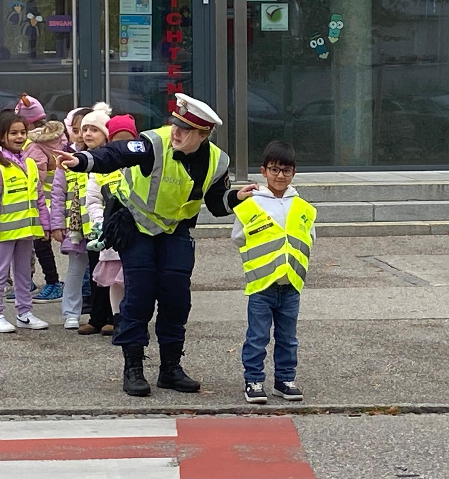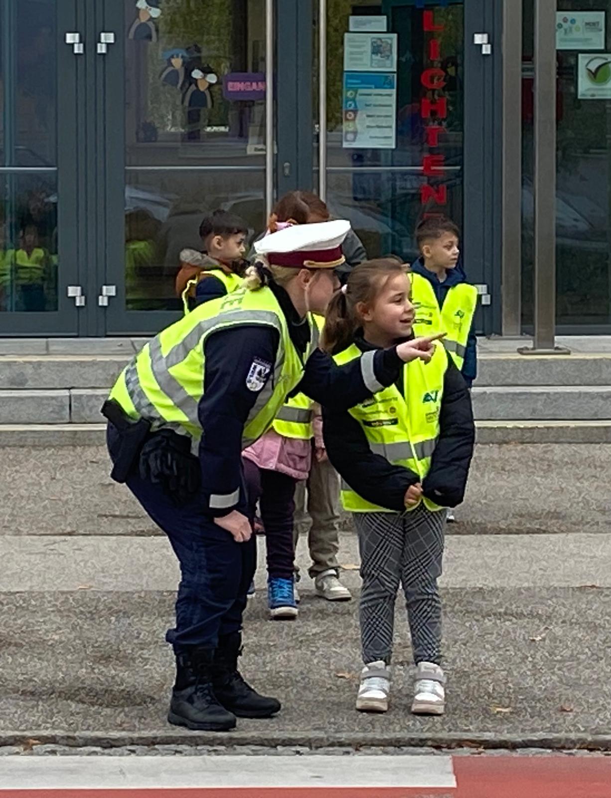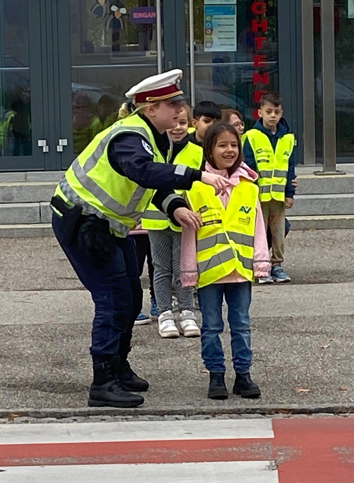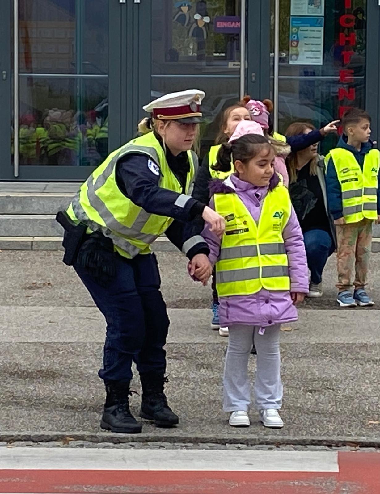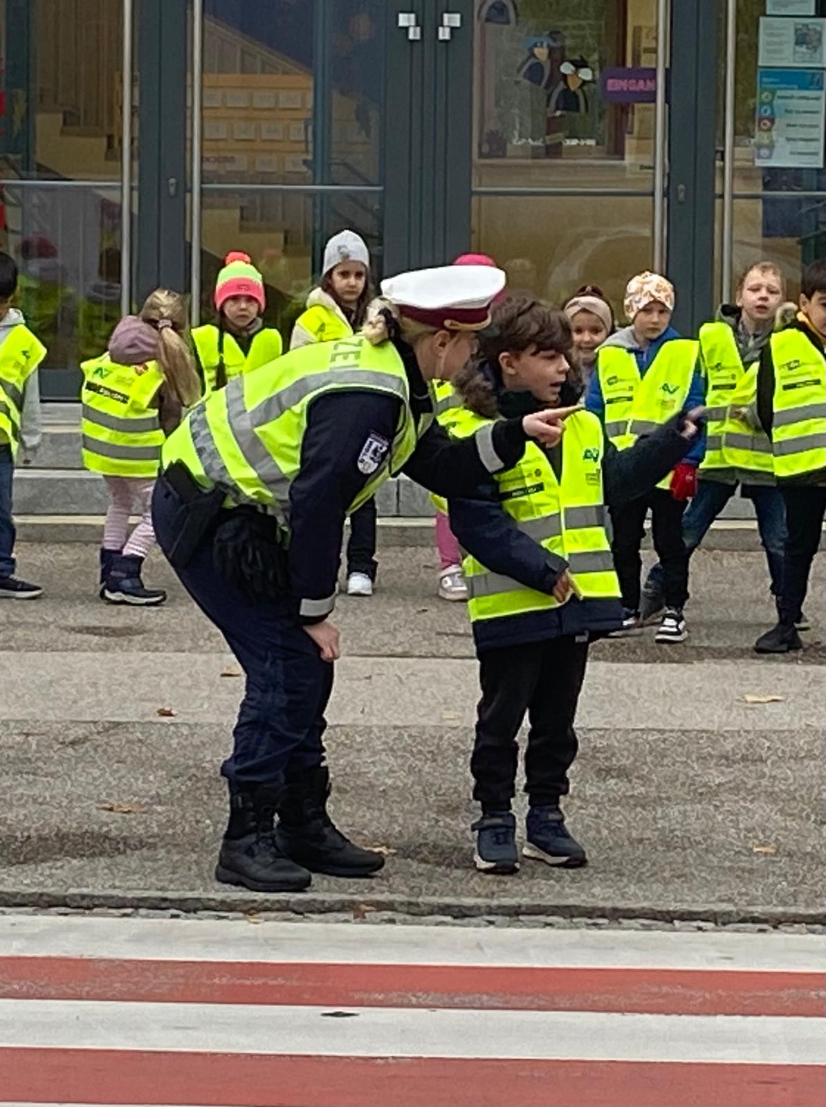 Am 22.10. hatte die 1b ganz besonderen Besuch: Eine echte Polizistin war bei uns! Gemeinsam haben wir geübt, wie man richtig und sicher über die Straße geht – mit Ampel, Zebrastreifen und ganz viel Aufmerksamkeit. Dabei haben wir auch gelernt: Nicht alle Autofahrer sind so aufmerksam wie wir! Manche sind einfach weitergefahren, obwohl eine ganze Gruppe Kinder mit einer Polizistin vor dem Zebrastreifen stand! Aber keine Sorge – unsere Polizistin blieb cool, zückte ihr Notizheft und sorgte für „pädagogisch wertvolle“ Lerneffekte… zumindest für die Autofahrer.