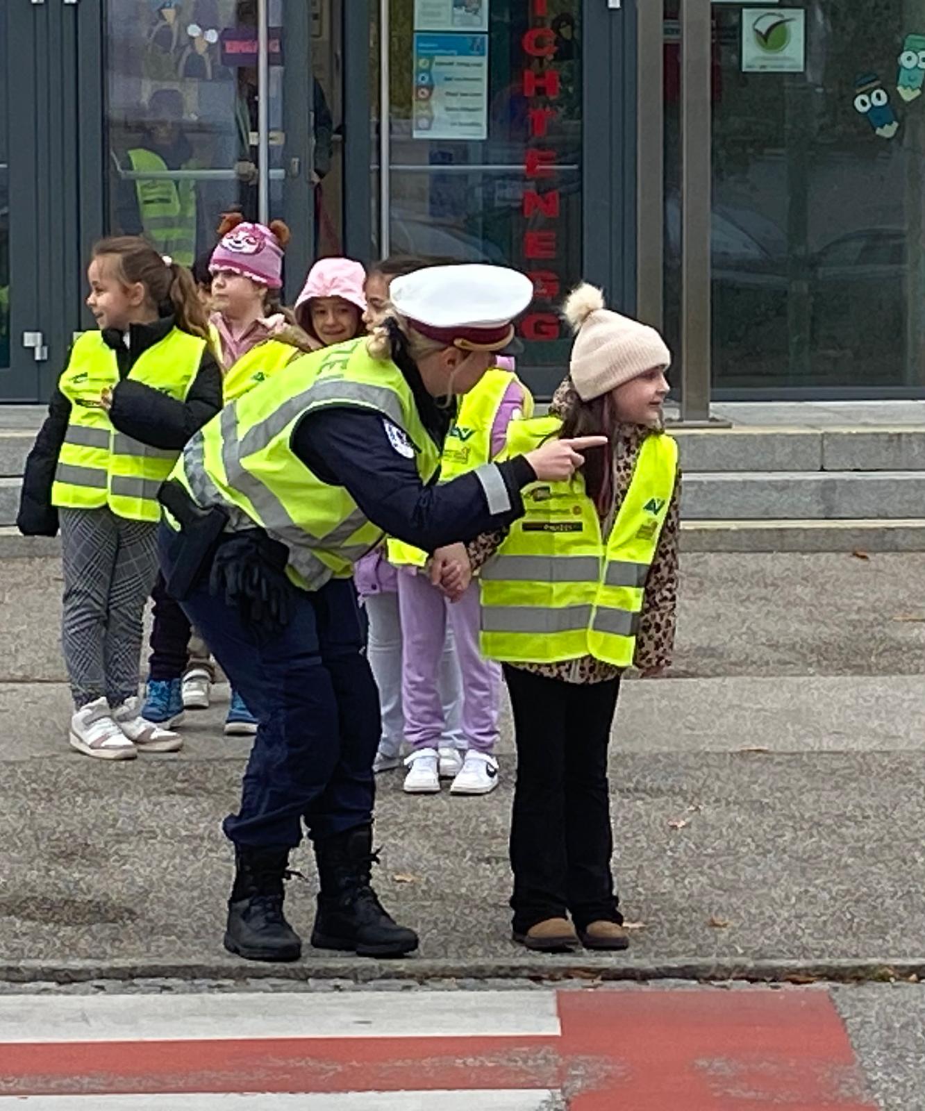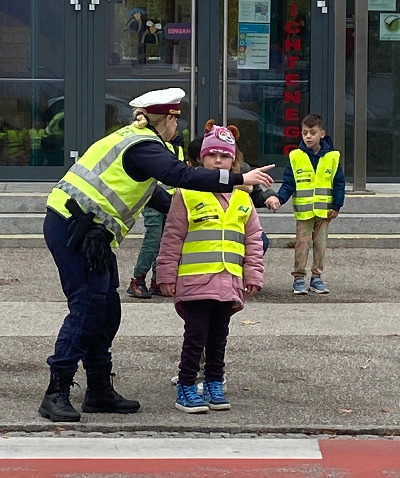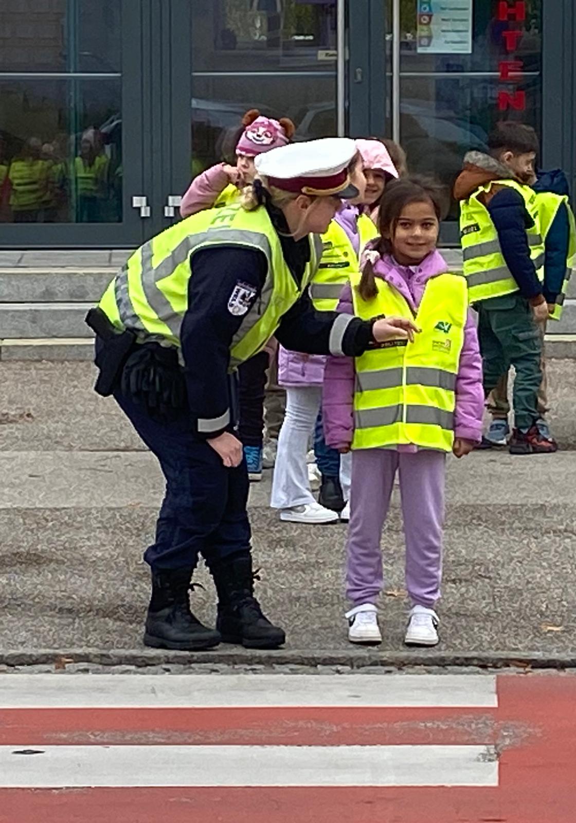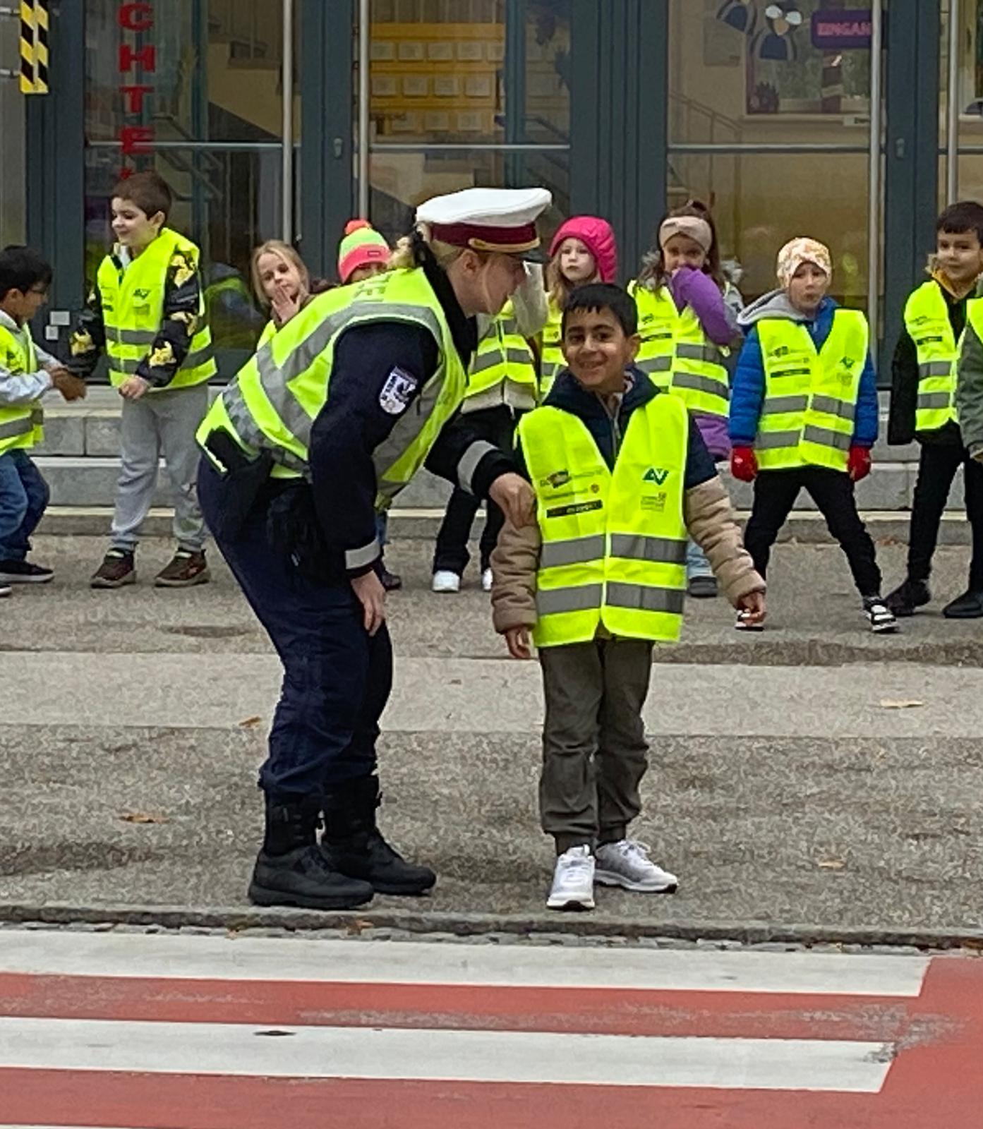 Am 22.10. hatte die 1b ganz besonderen Besuch: Eine echte Polizistin war bei uns! Gemeinsam haben wir geübt, wie man richtig und sicher über die Straße geht – mit Ampel, Zebrastreifen und ganz viel Aufmerksamkeit. Dabei haben wir auch gelernt: Nicht alle Autofahrer sind so aufmerksam wie wir! Manche sind einfach weitergefahren, obwohl eine ganze Gruppe Kinder mit einer Polizistin vor dem Zebrastreifen stand! Aber keine Sorge – unsere Polizistin blieb cool, zückte ihr Notizheft und sorgte für „pädagogisch wertvolle“ Lerneffekte… zumindest für die Autofahrer.