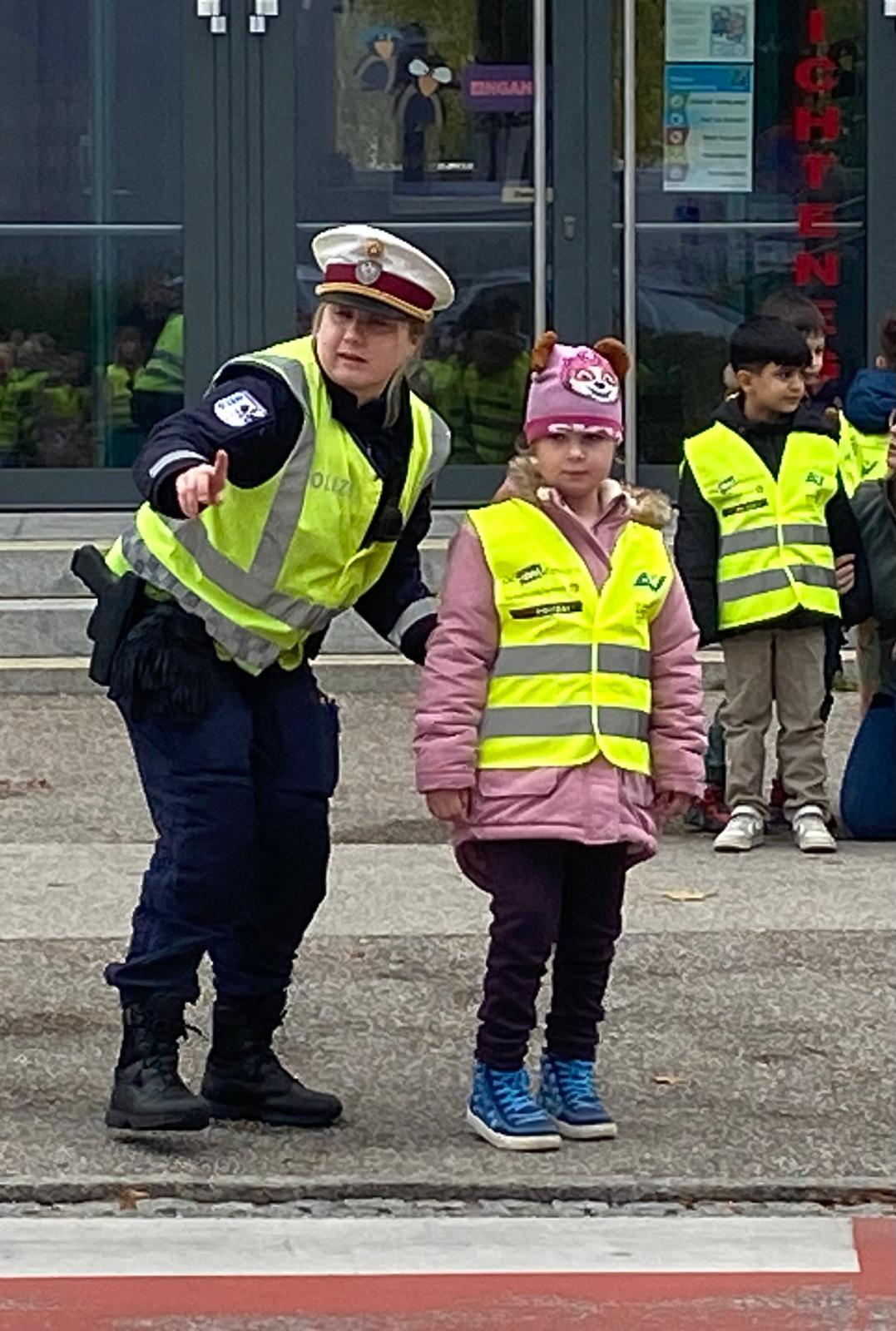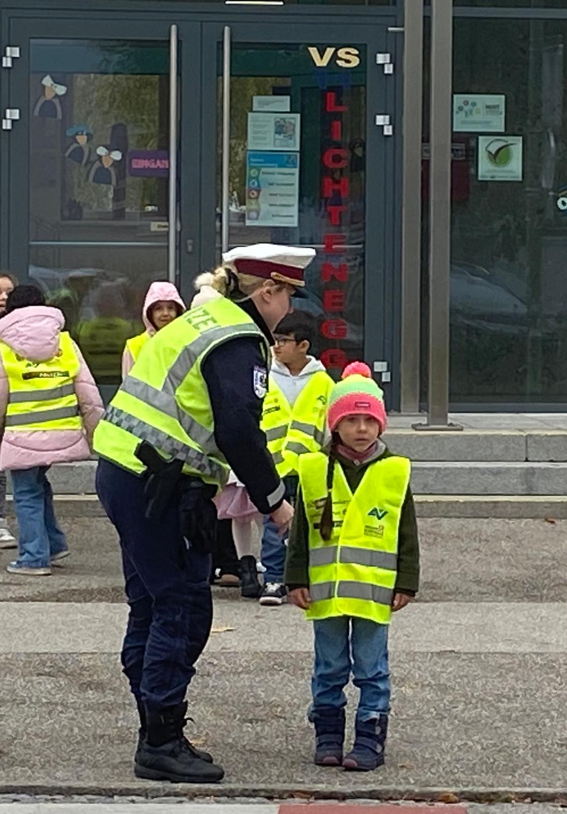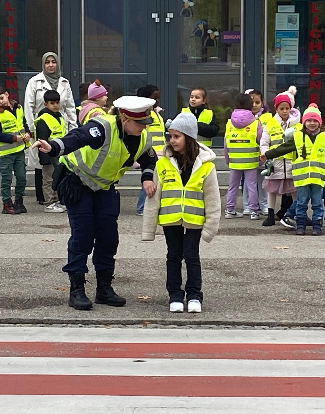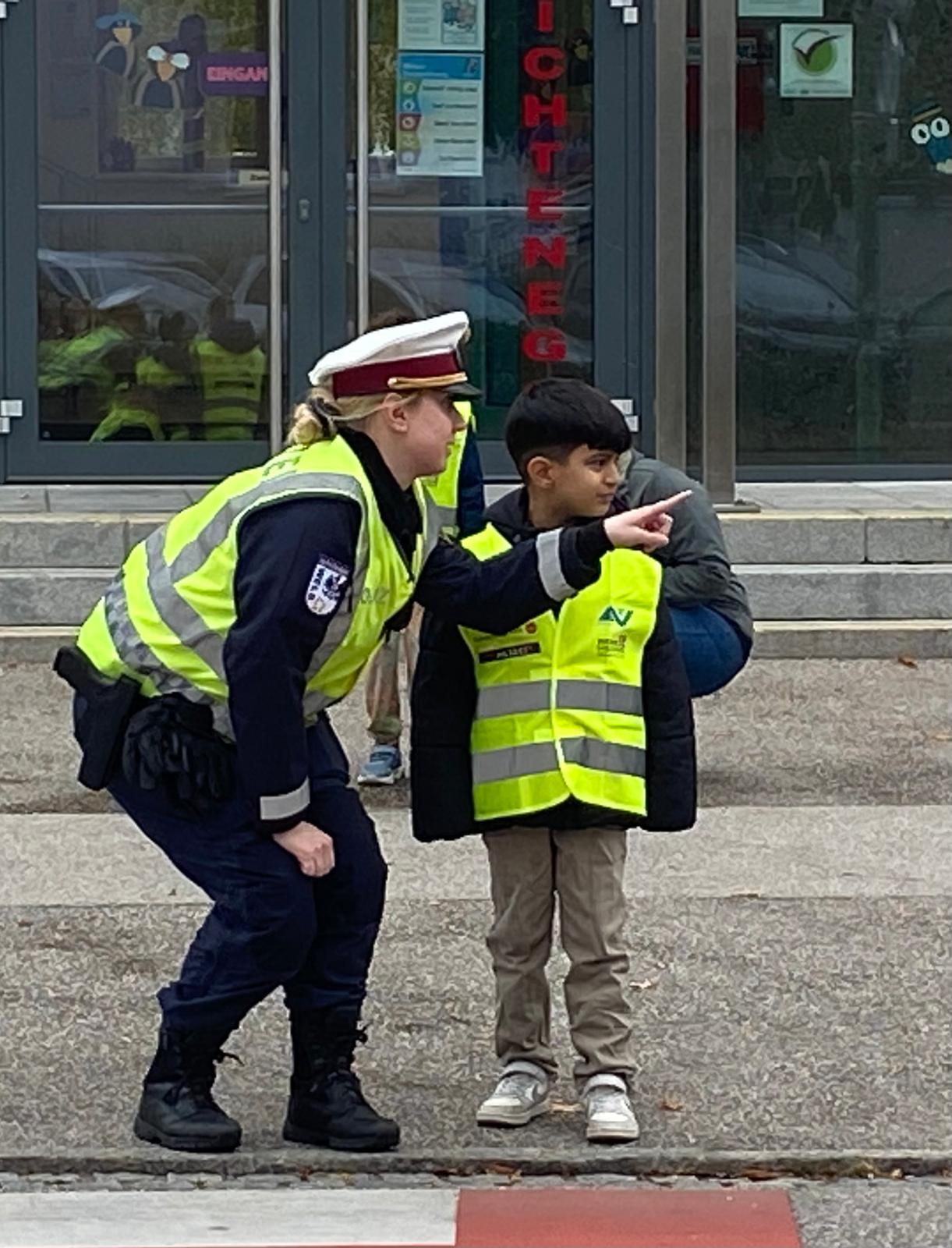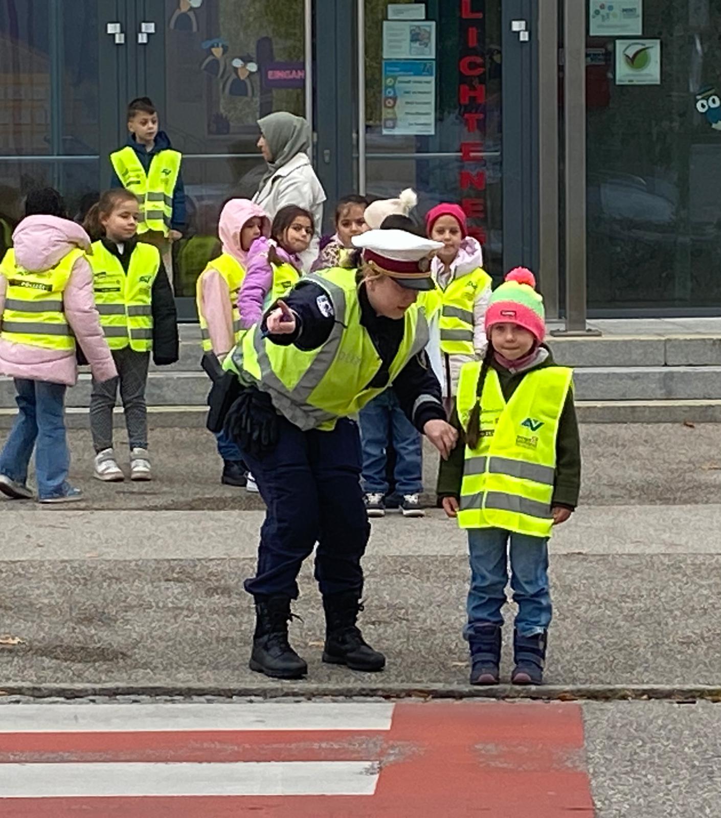 Am 22.10. hatte die 1b ganz besonderen Besuch: Eine echte Polizistin war bei uns! Gemeinsam haben wir geübt, wie man richtig und sicher über die Straße geht – mit Ampel, Zebrastreifen und ganz viel Aufmerksamkeit. Dabei haben wir auch gelernt: Nicht alle Autofahrer sind so aufmerksam wie wir! Manche sind einfach weitergefahren, obwohl eine ganze Gruppe Kinder mit einer Polizistin vor dem Zebrastreifen stand! Aber keine Sorge – unsere Polizistin blieb cool, zückte ihr Notizheft und sorgte für „pädagogisch wertvolle“ Lerneffekte… zumindest für die Autofahrer.