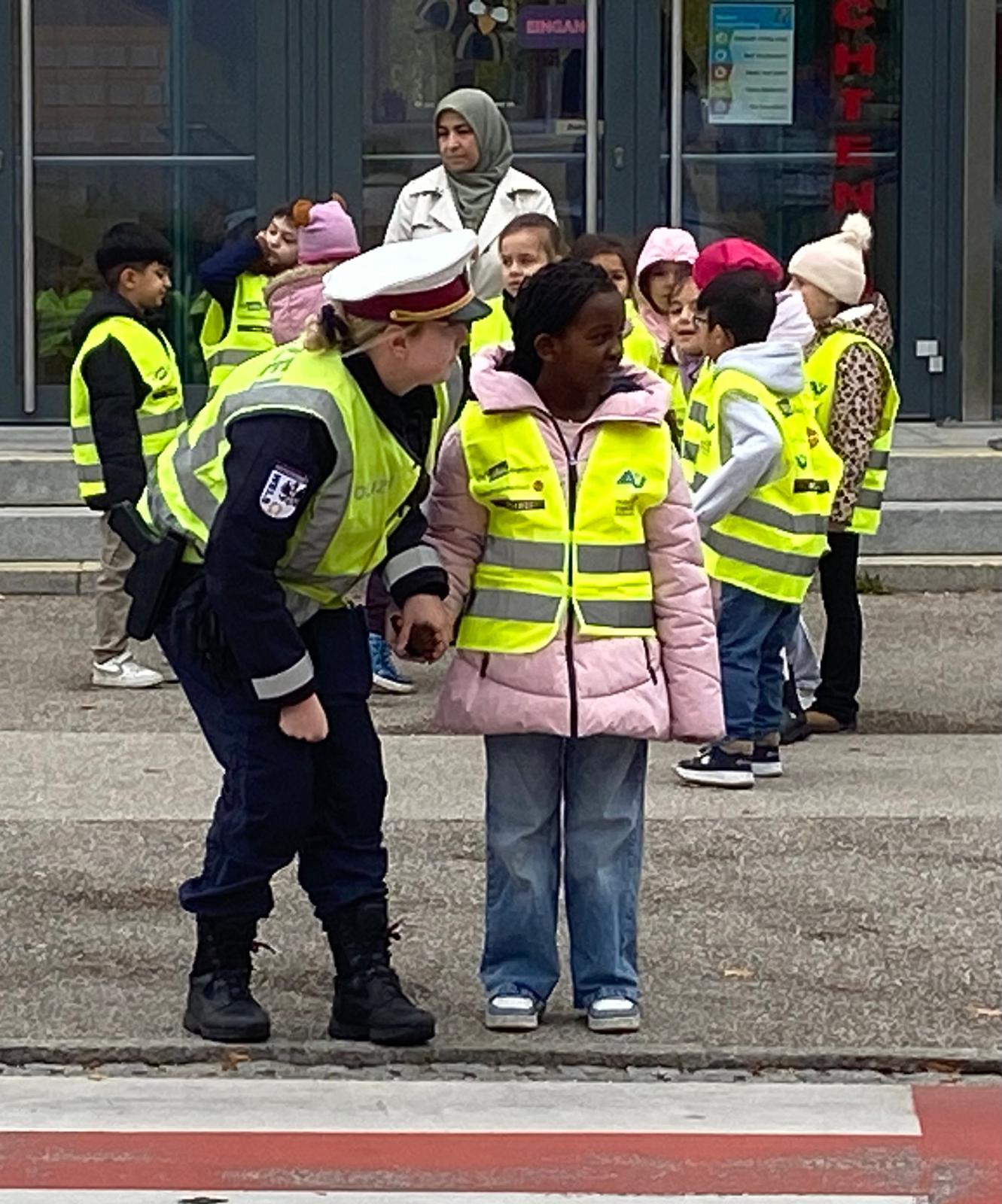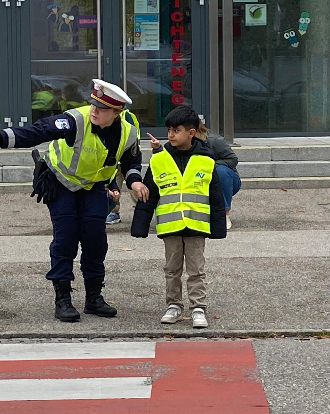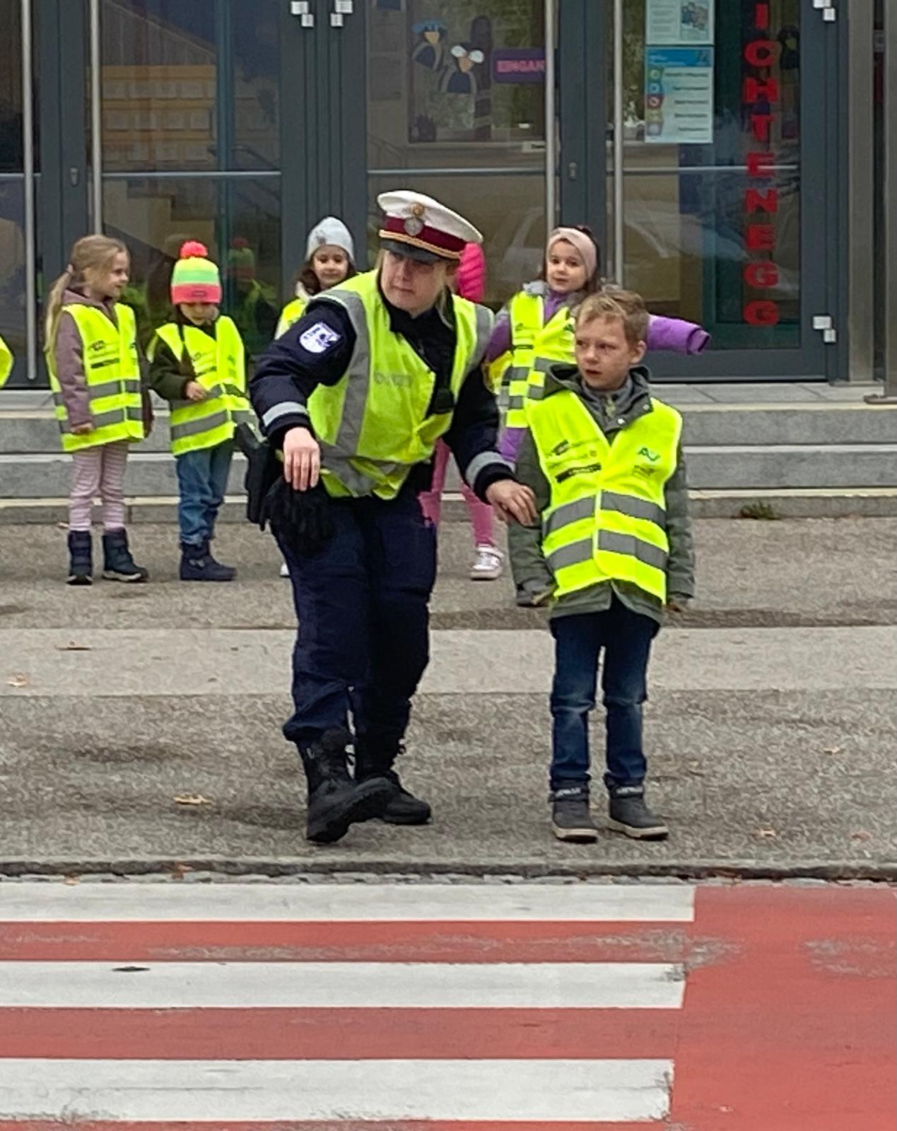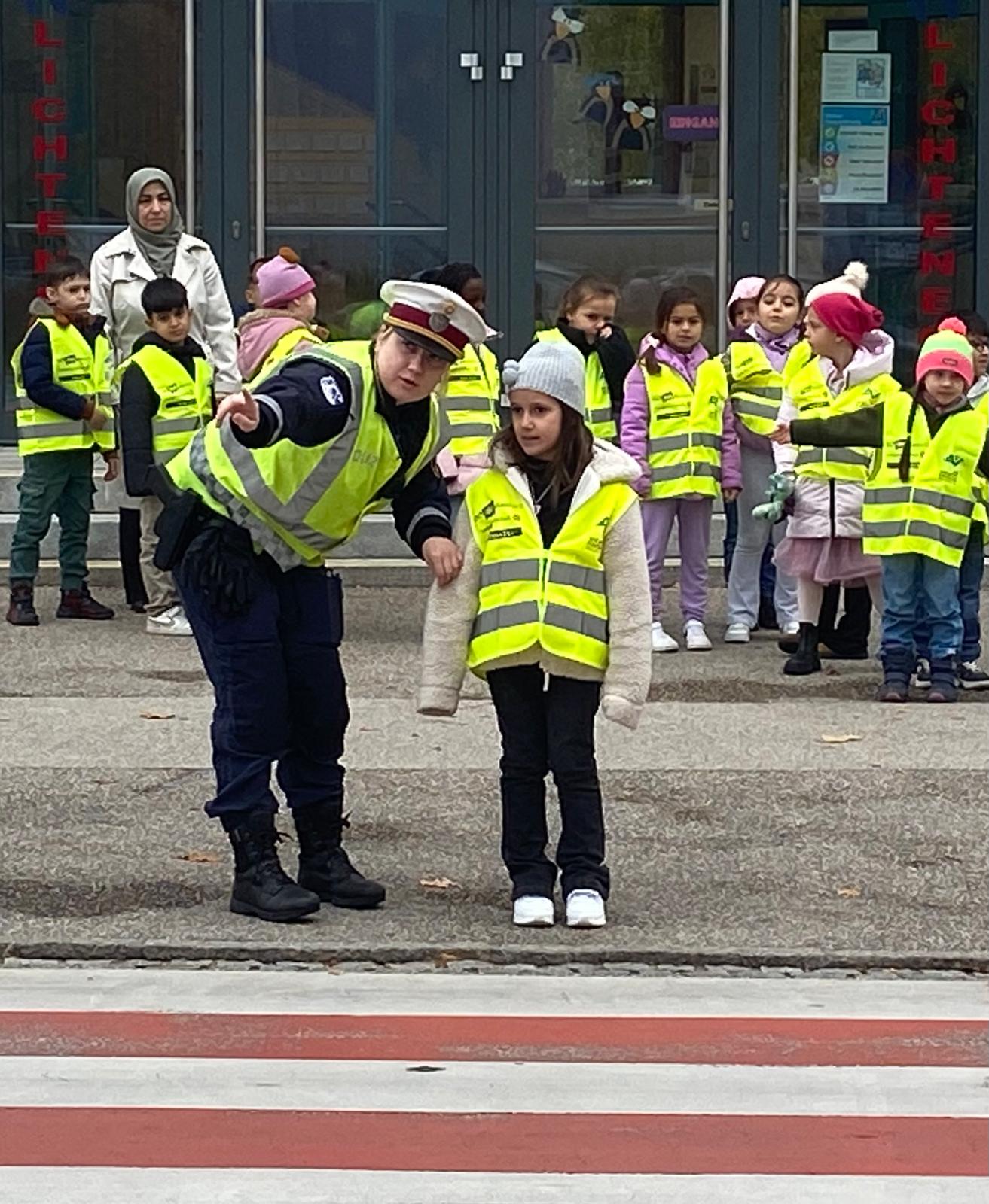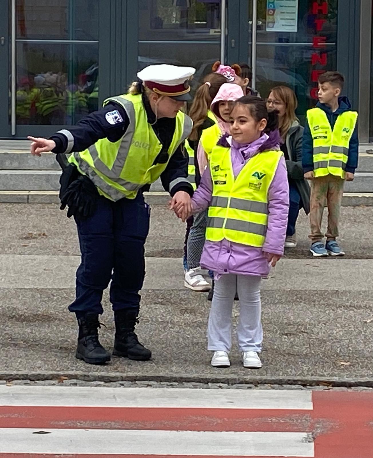 Am 22.10. hatte die 1b ganz besonderen Besuch: Eine echte Polizistin war bei uns! Gemeinsam haben wir geübt, wie man richtig und sicher über die Straße geht – mit Ampel, Zebrastreifen und ganz viel Aufmerksamkeit. Dabei haben wir auch gelernt: Nicht alle Autofahrer sind so aufmerksam wie wir! Manche sind einfach weitergefahren, obwohl eine ganze Gruppe Kinder mit einer Polizistin vor dem Zebrastreifen stand! Aber keine Sorge – unsere Polizistin blieb cool, zückte ihr Notizheft und sorgte für „pädagogisch wertvolle“ Lerneffekte… zumindest für die Autofahrer.