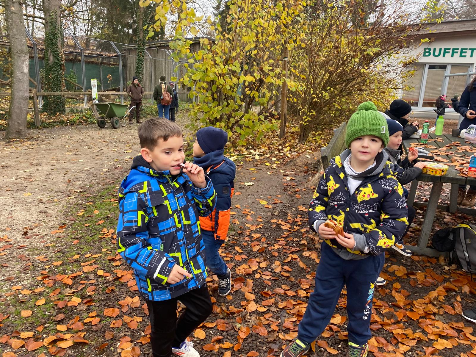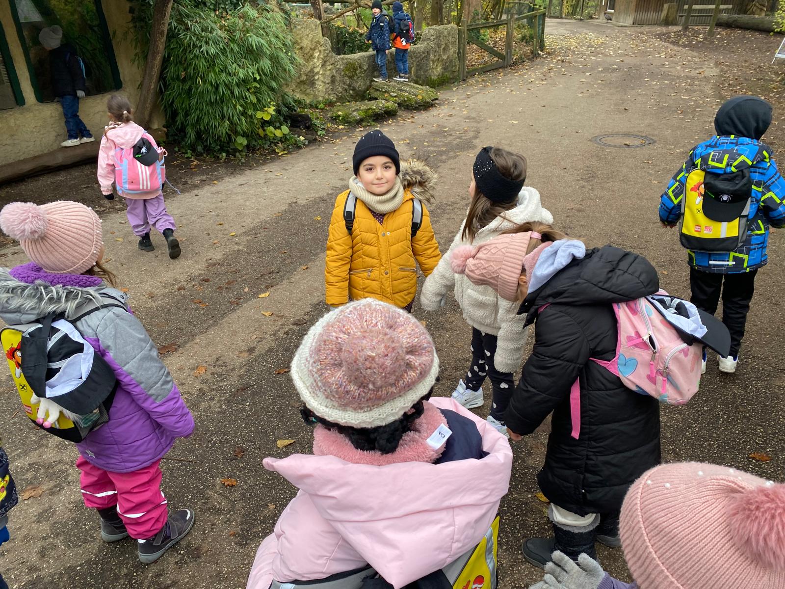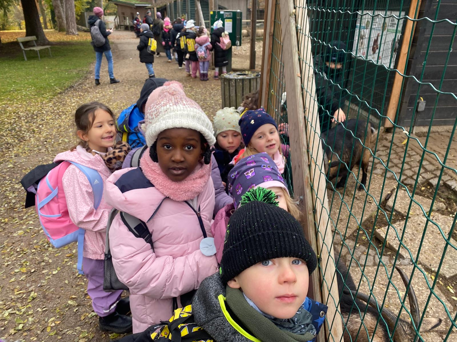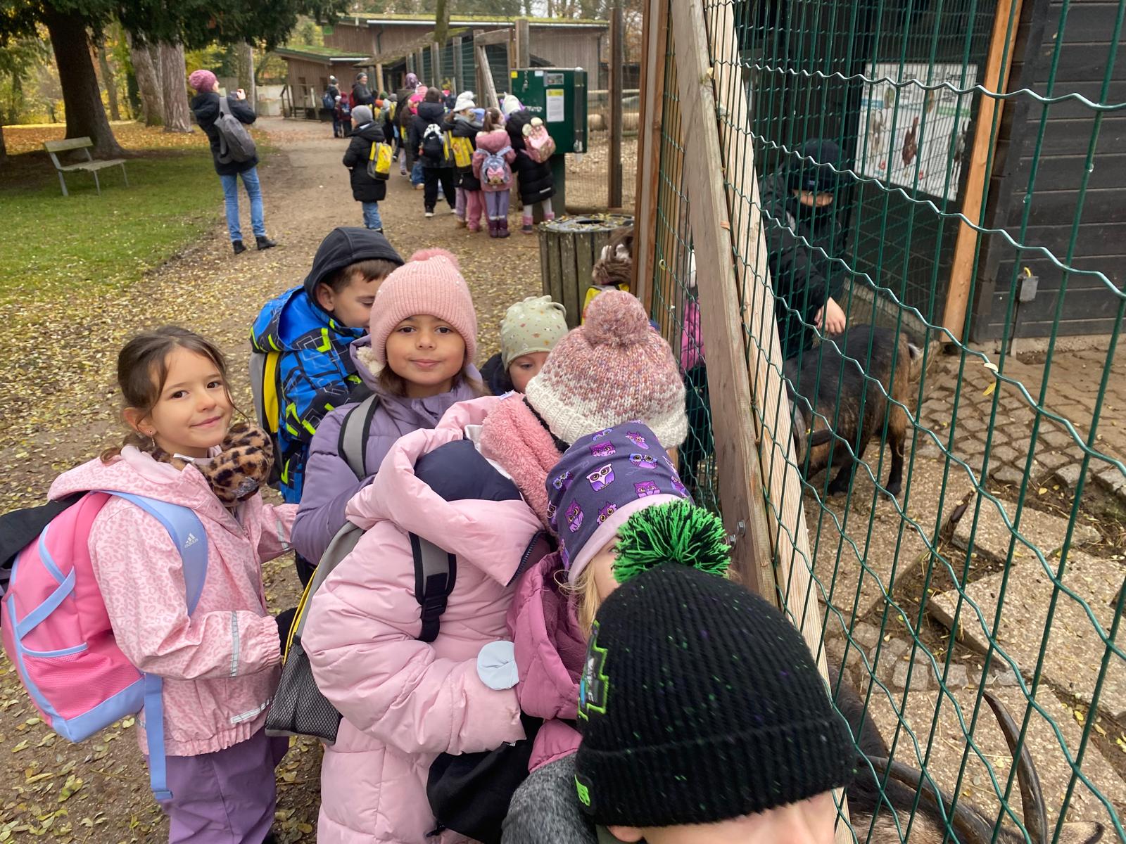 Am 14.11. machten sich alle ersten Klassen - und das waren wirklich viele Kinder - auf den Weg in den Tierpark. Schon beim Hinweg zeigte sich: Unsere Schüler*innen sind echte Profis vor der