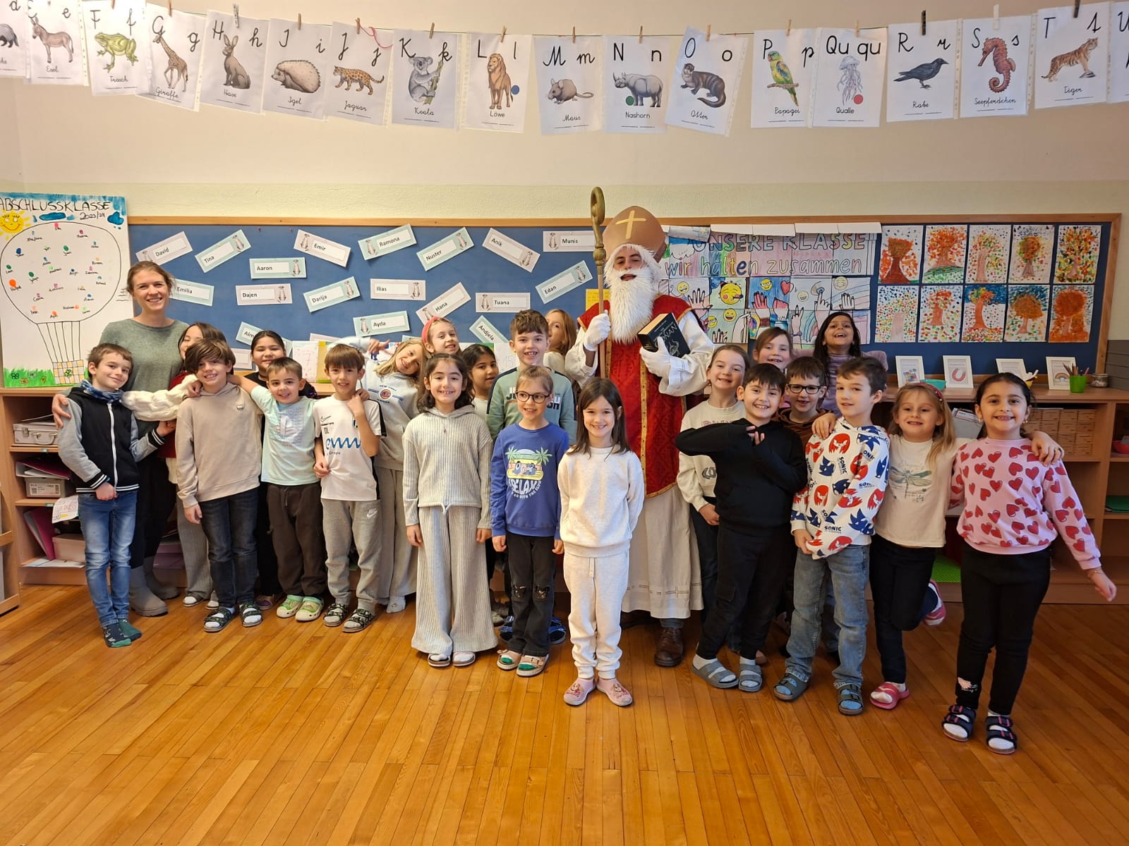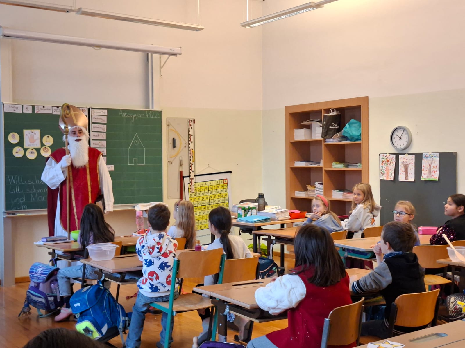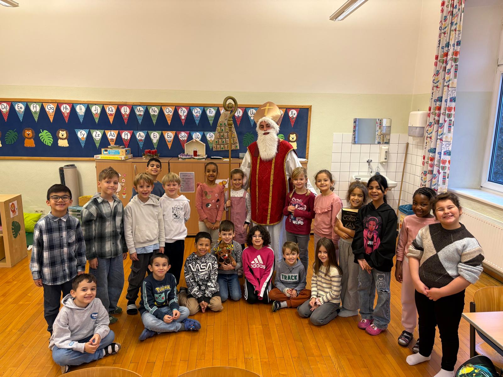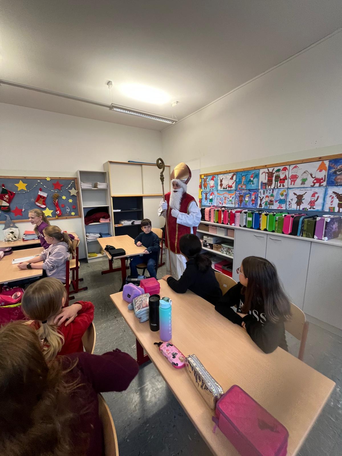 Am 5. Dezember war es endlich so weit: Der Nikolaus besuchte unsere Schule! Mit großer Freude und leuchtenden Augen empfingen die Kinder den besonderen Gast, der mit seinem Buch von den vielen