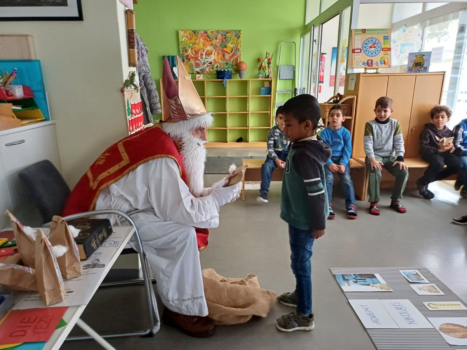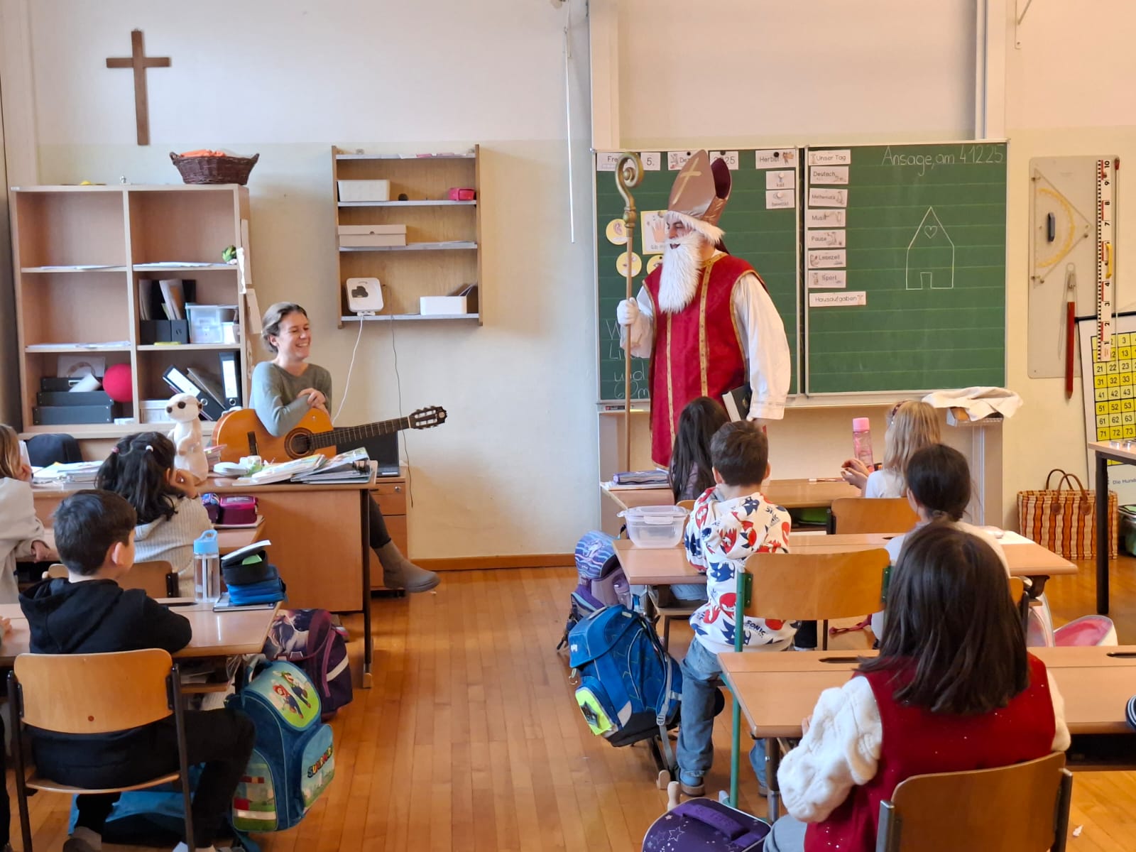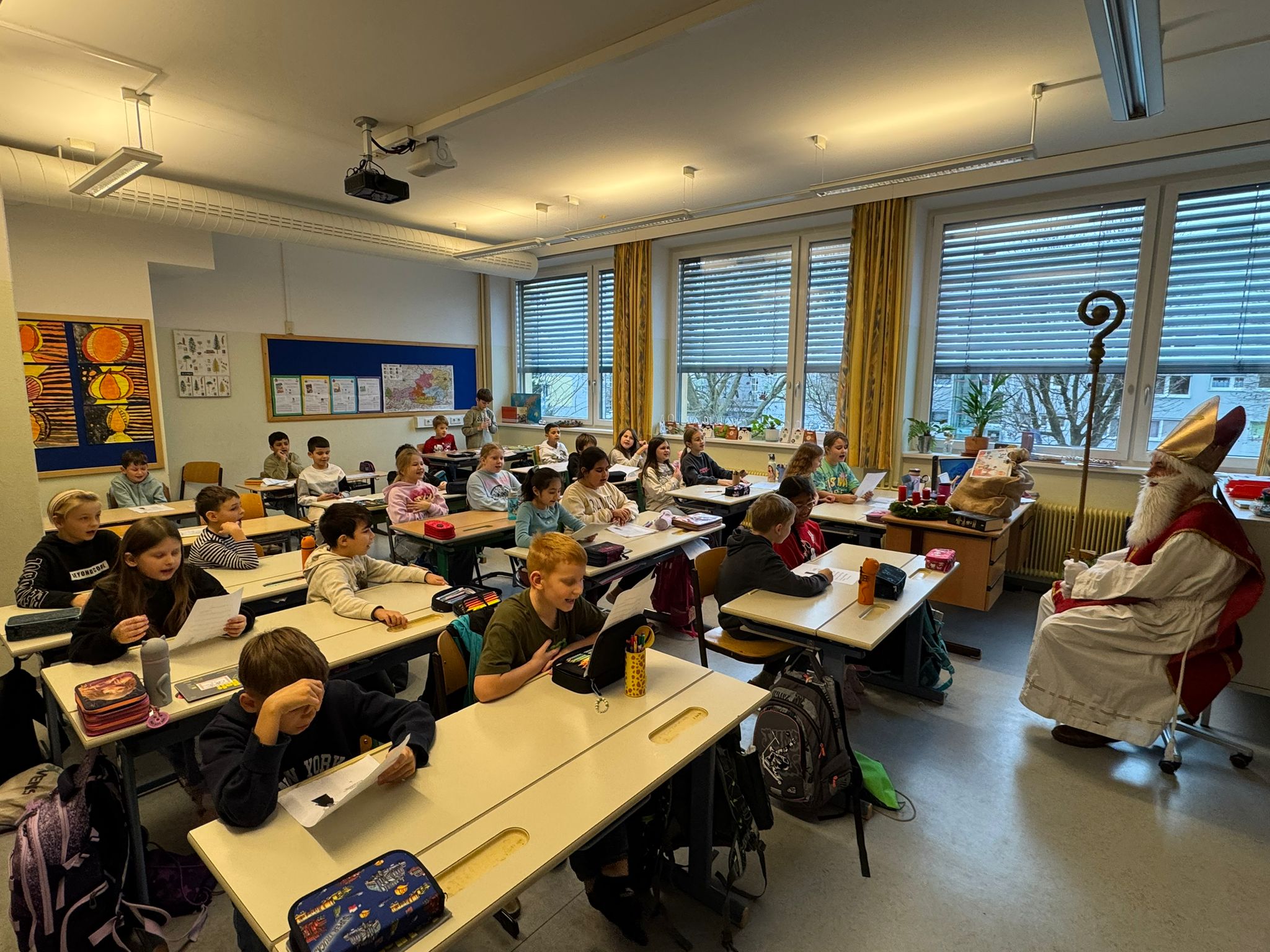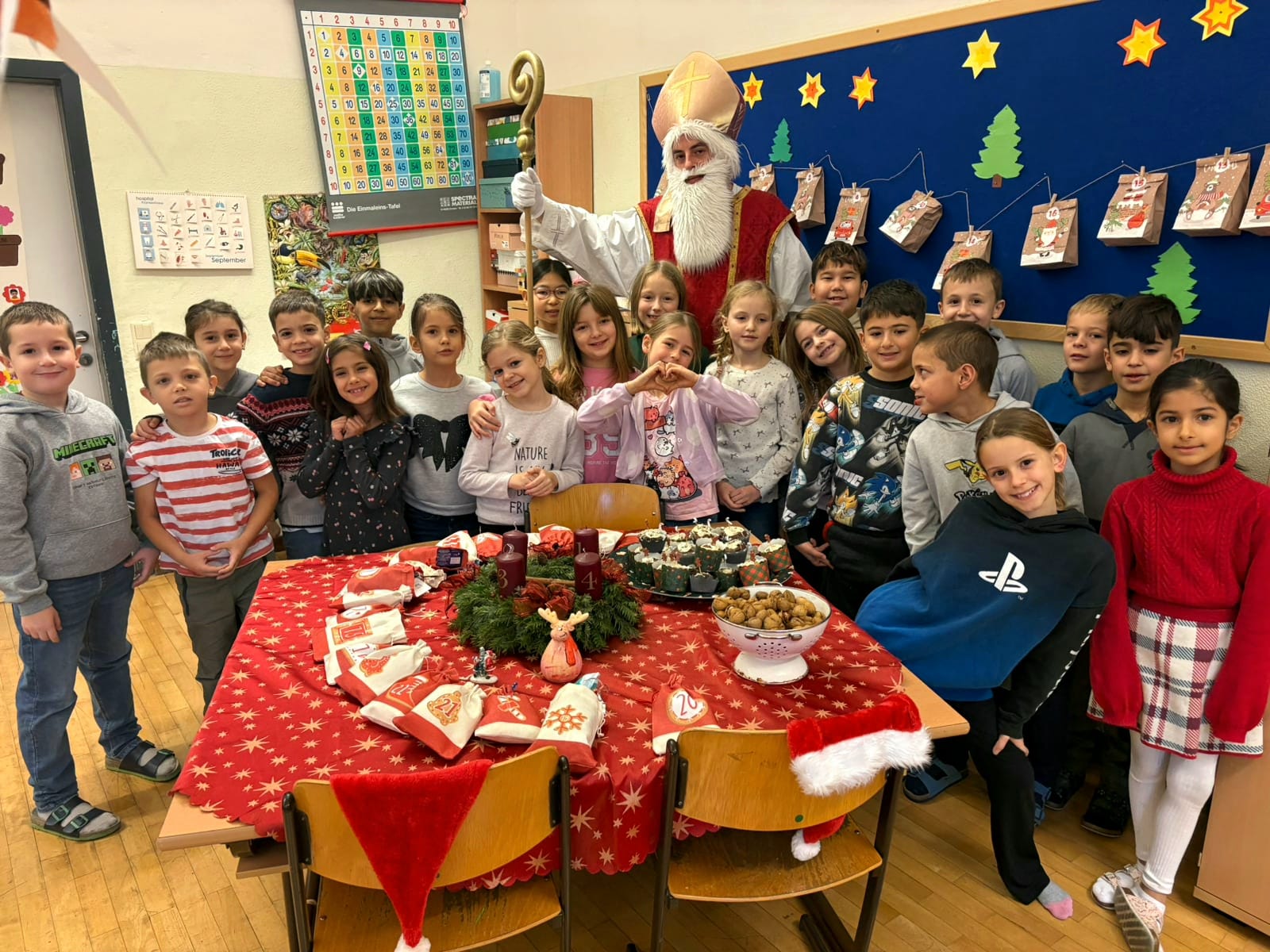 Am 5. Dezember war es endlich so weit: Der Nikolaus besuchte unsere Schule! Mit großer Freude und leuchtenden Augen empfingen die Kinder den besonderen Gast, der mit seinem Buch von den vielen
