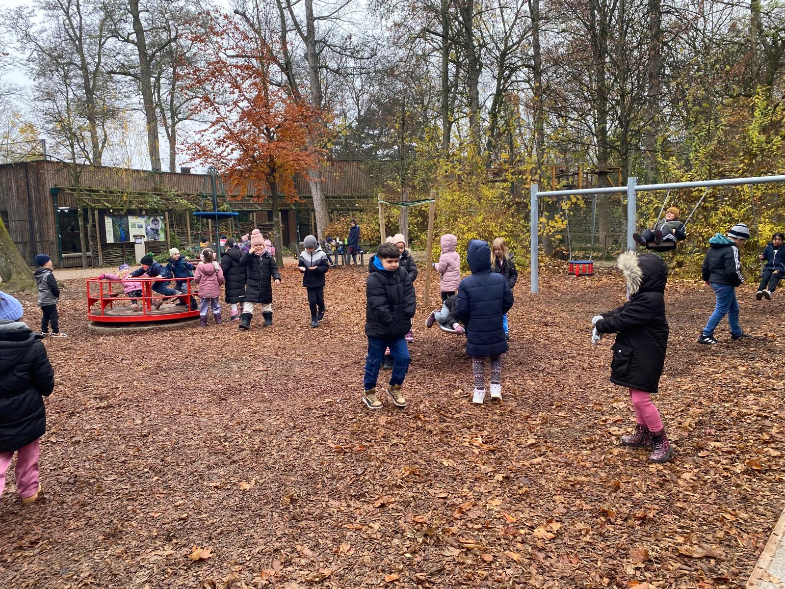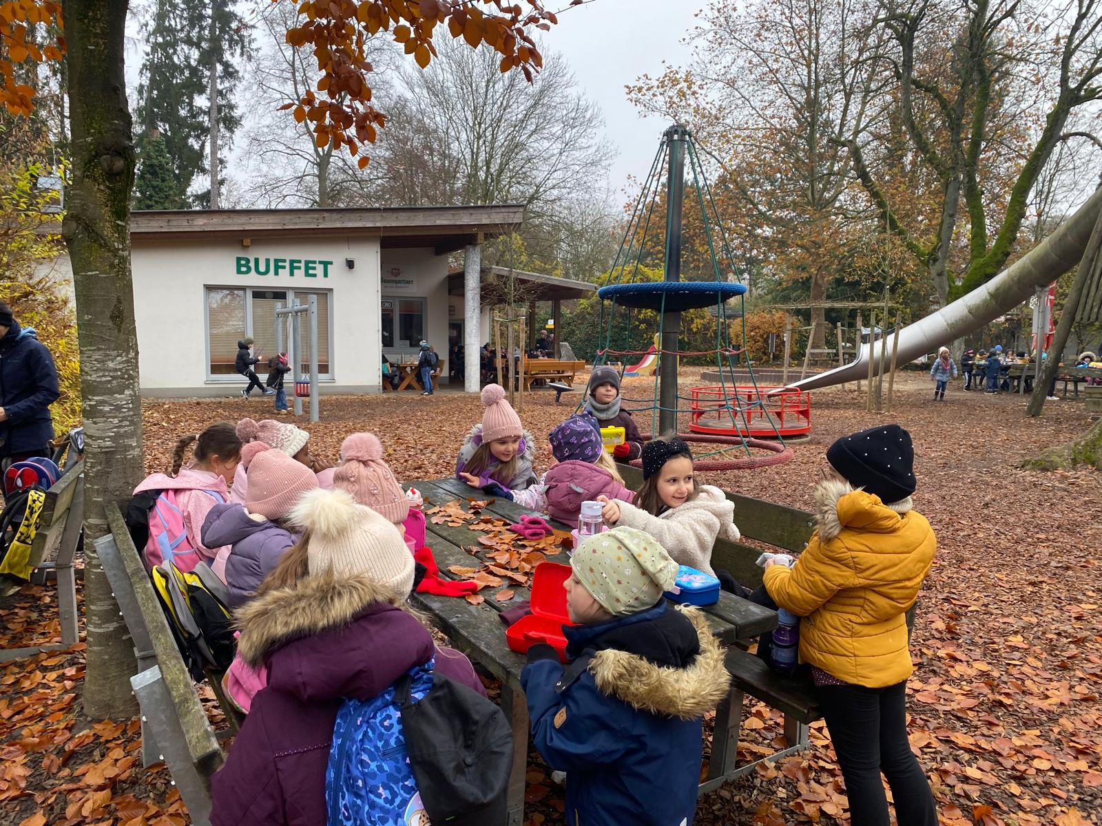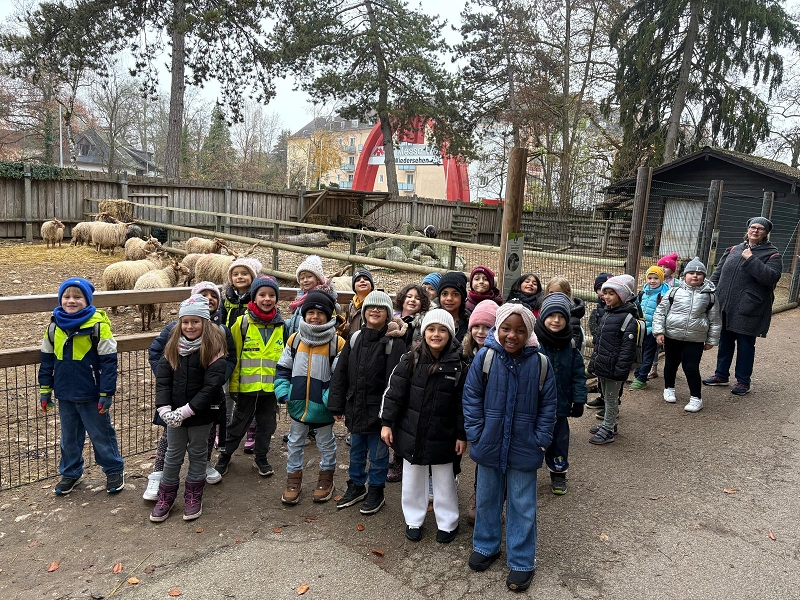 Am heutigen Wandertag machten sich die Klassen 4a und 4b gemeinsam auf den Weg zum Tierpark. Obwohl dort der ursprünglich geplante Workshop krankheitsbedingt leider ausfallen musste, ließen sich die Kinder die Freude am Ausflug nicht nehmen.