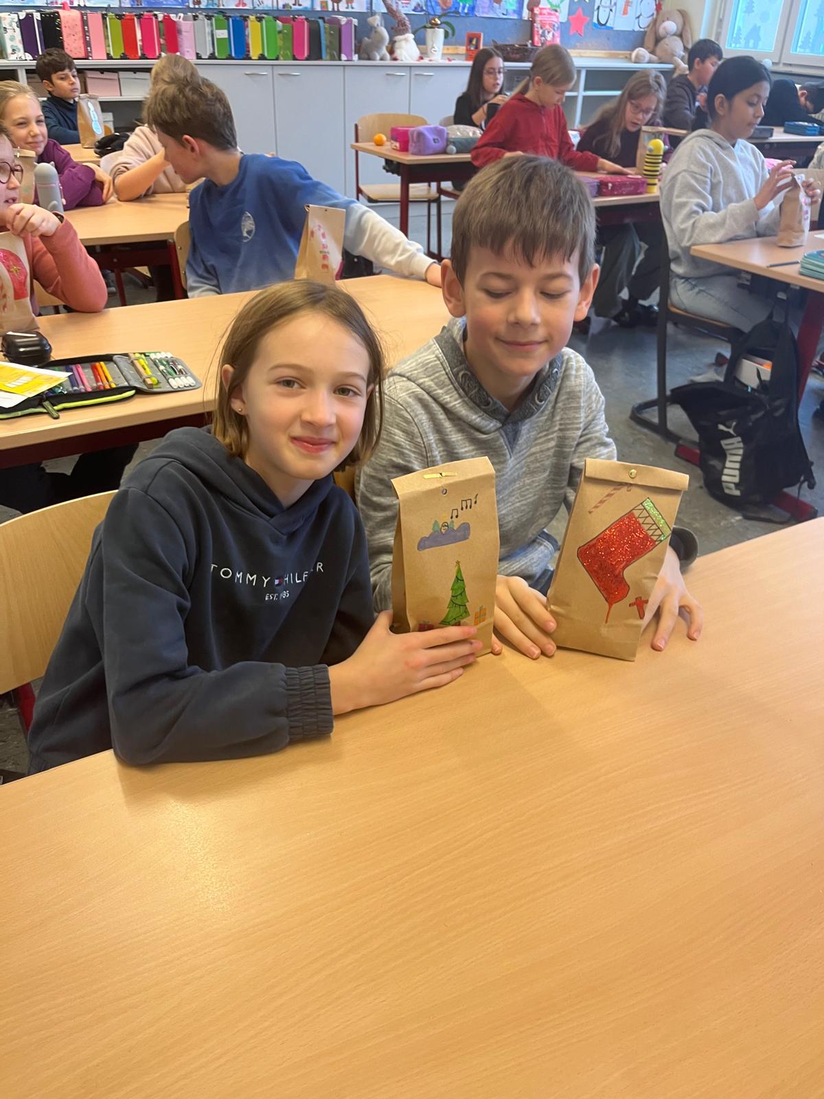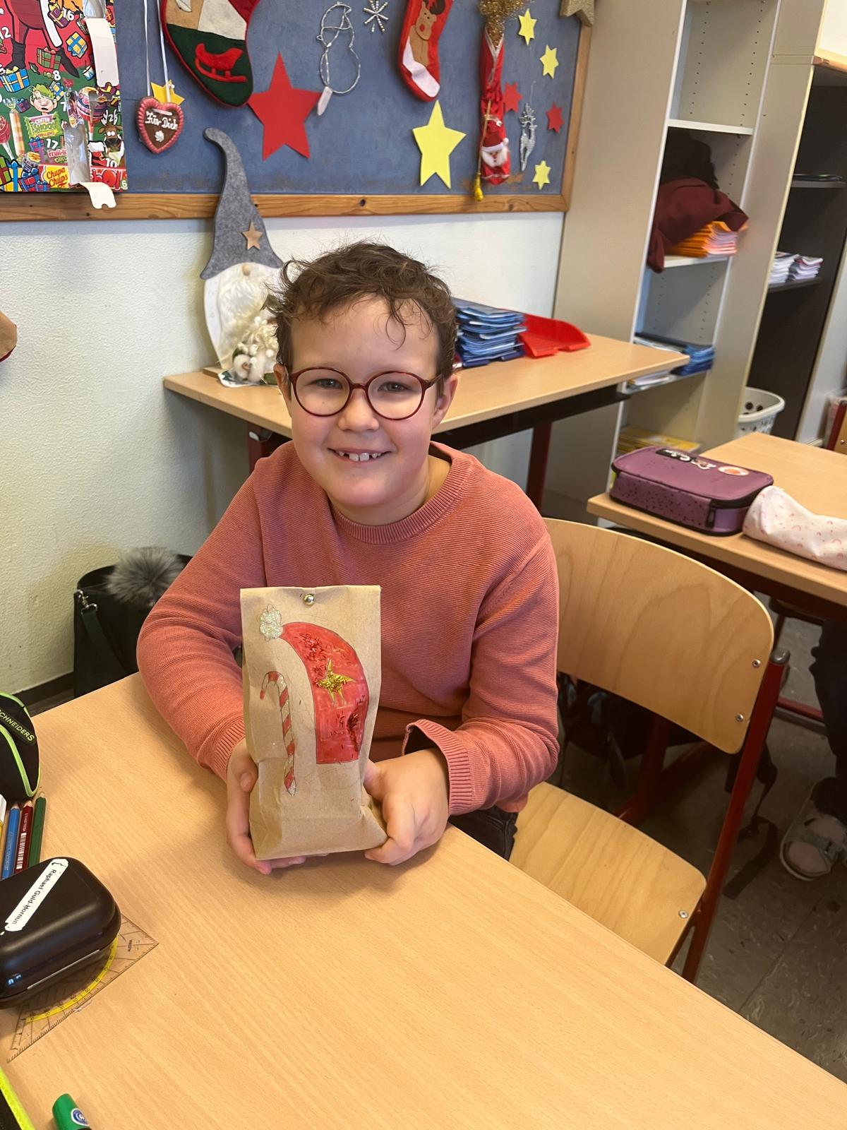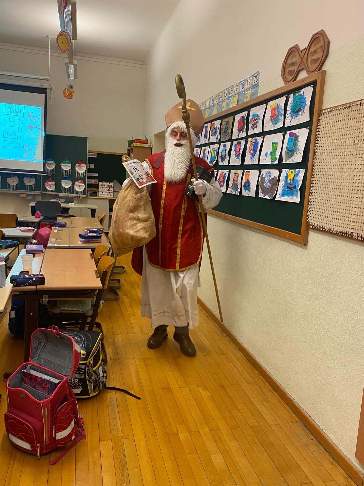 In jeder Klasse nahm sich der Nikolaus Zeit, den Kindern zuzuhören, sie zu loben und ihnen ein kleines Geschenk zu überreichen. Jedes Kind bekam heuer ein selbst gestaltetes Nikolaussackerl,
