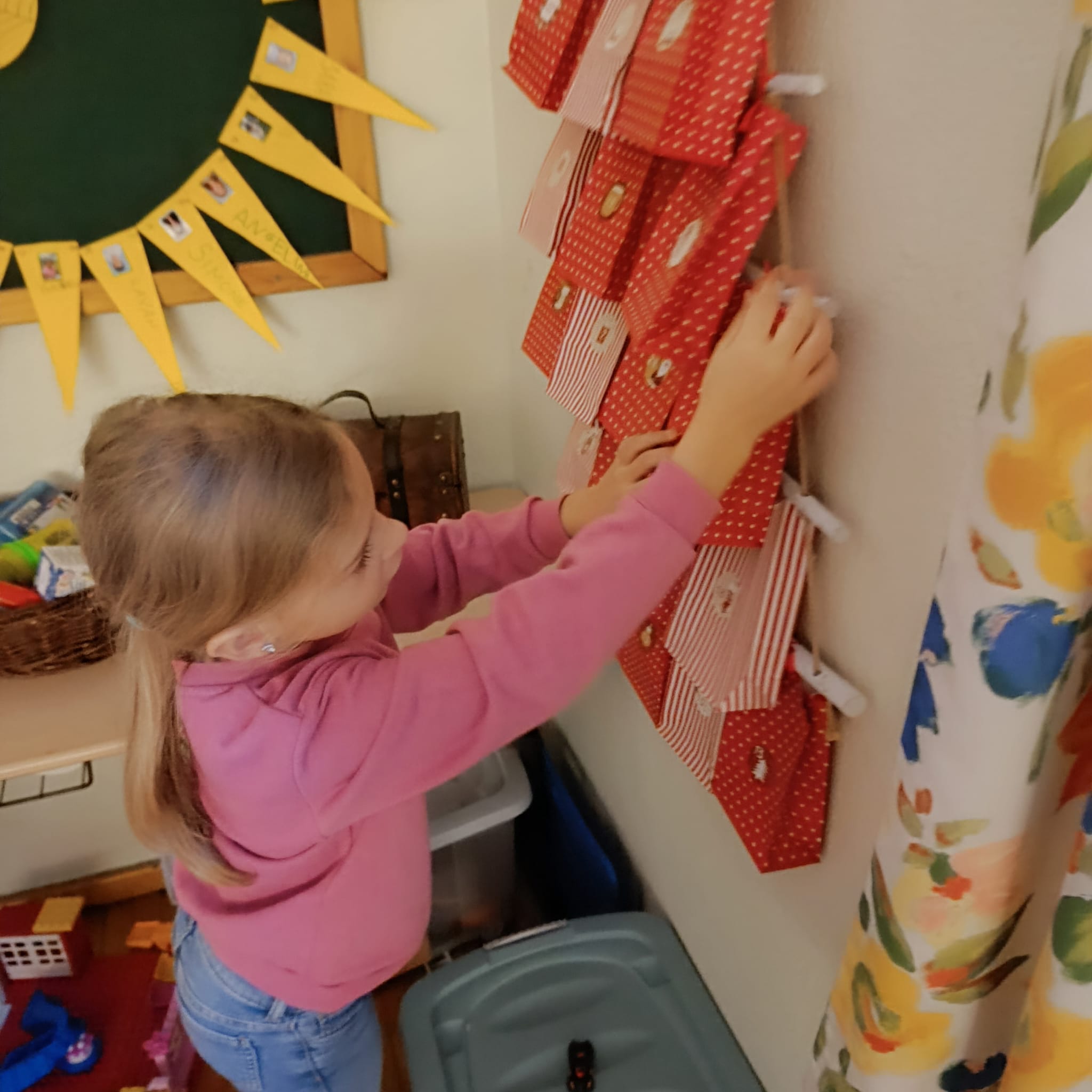 darf ein Kind das Säckchen unseres Adventkalenders holen. Die Überraschung darin sorgt jedes Mal für strahlende Augen und trägt zu einer liebevollen, erwartungsvollen Atmosphäre bei. So entsteht