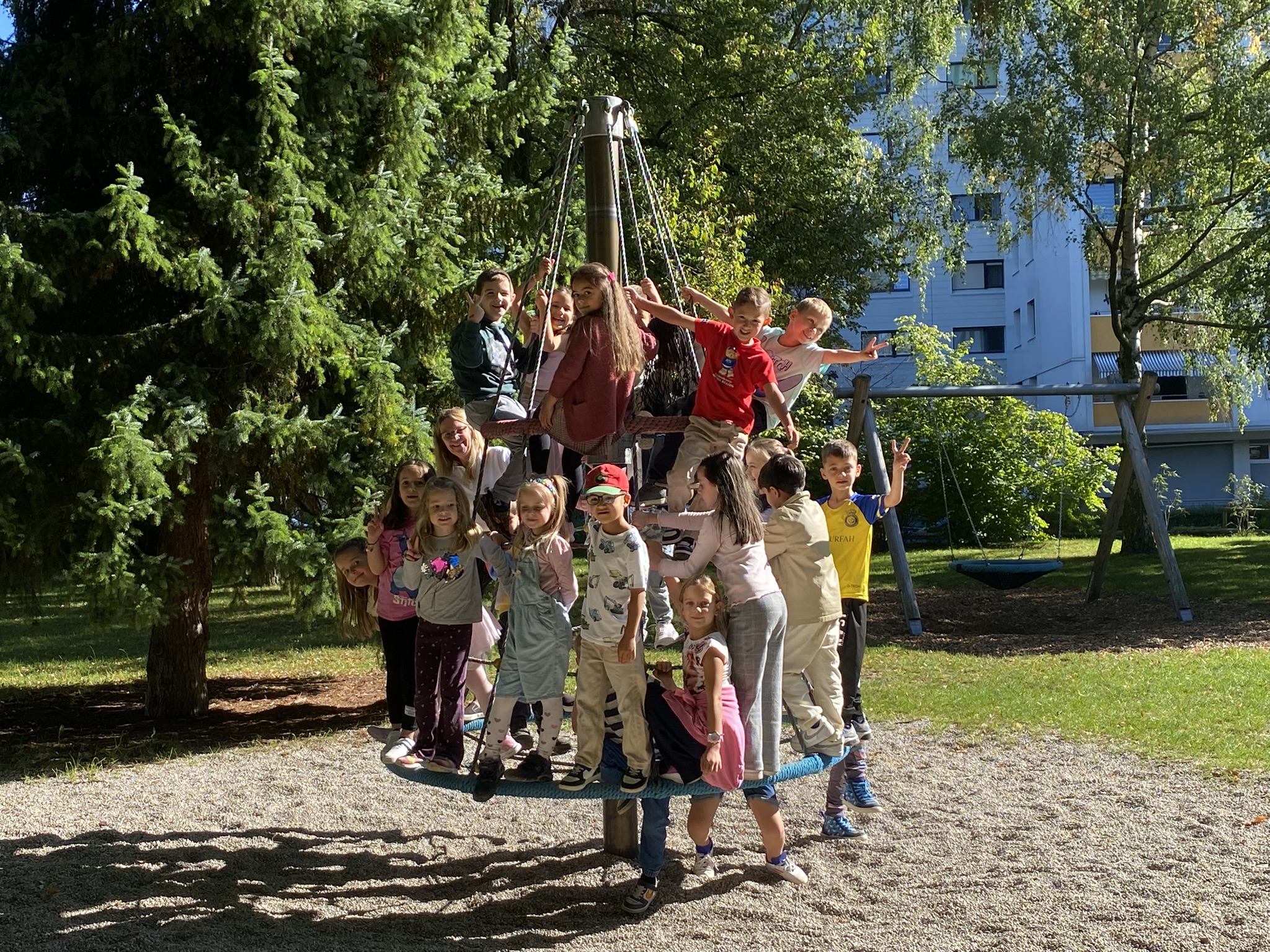 Am 19.9. war es endlich soweit: Nach den ersten zwei harten Wochen voller Hausübungen, Schultaschen-Schlepperei und geheimen Mathe-Missionen stürmten die Schüler*innen den coolen Spielplatz am Rosenhag! 🎉