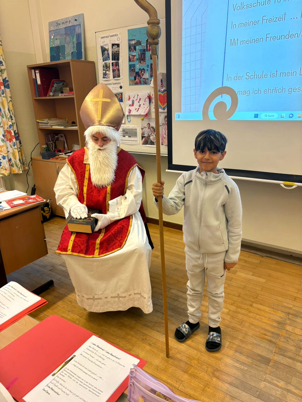 Mutige Kinder durften sogar seinen großen Bischofsstab halten – ein echtes Highlight! Mit strahlenden Augen trugen die Schülerinnen und Schüler Lieder, Gedichte und sogar kleine Musikstücke auf