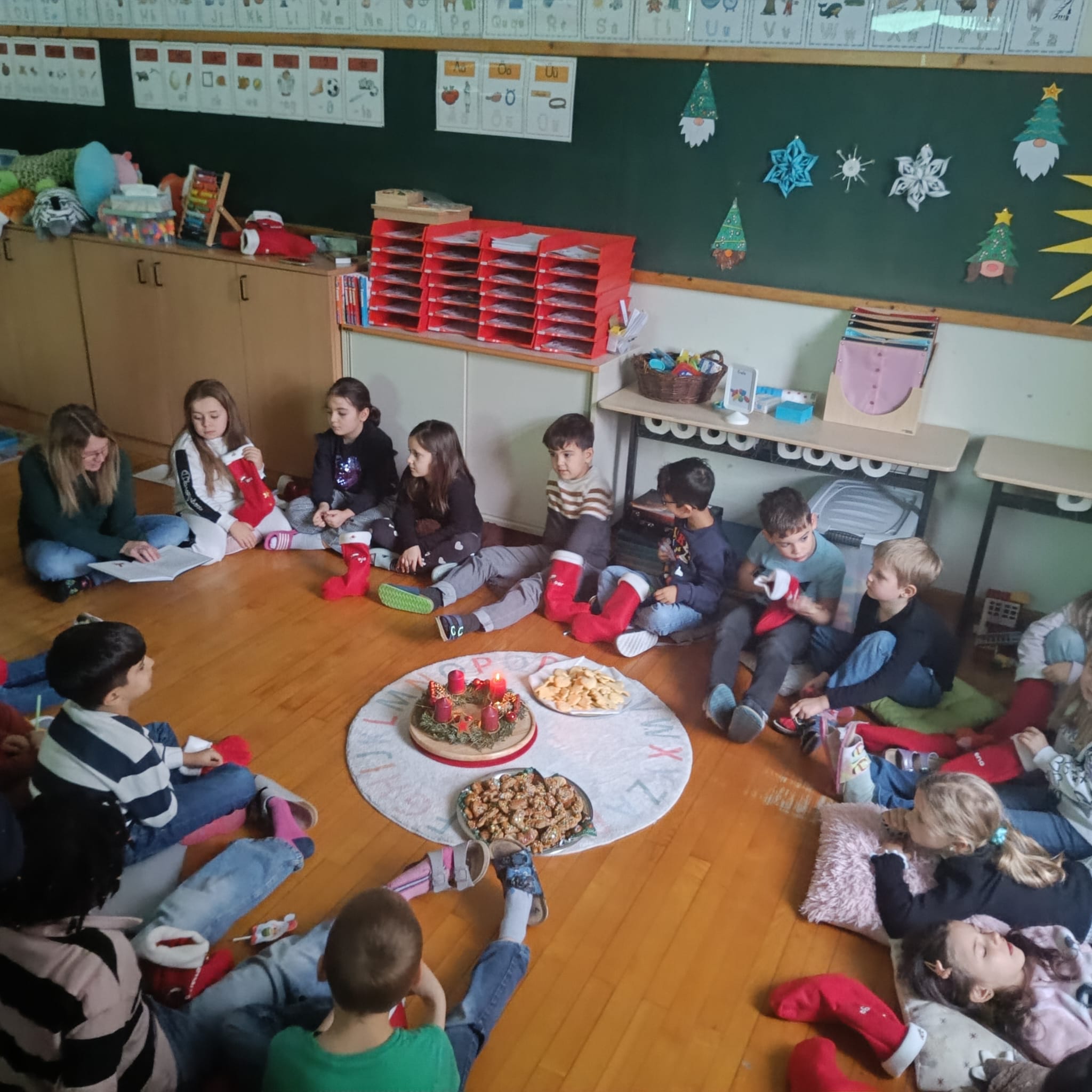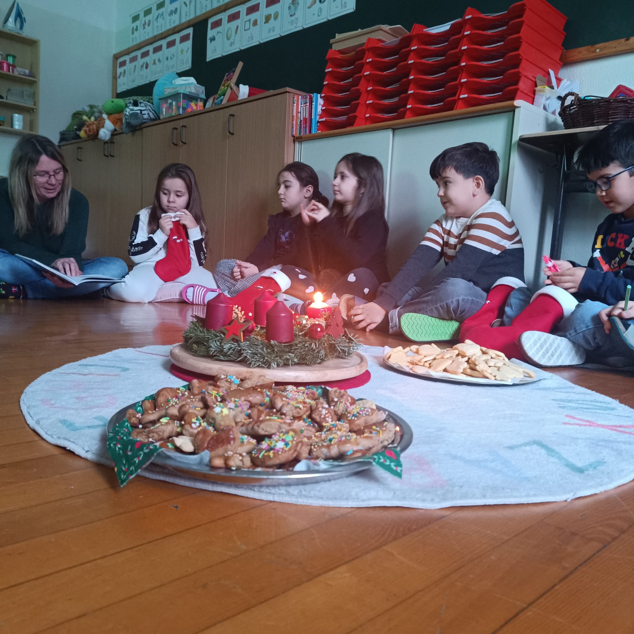 In unserer Klasse ist die Weihnachtszeit auf ganz besondere Weise spürbar. Jeden Tag im Advent treffen wir uns im gemütlichen Sitzkreis, zünden die Adventkerze an und stimmten uns gemeinsam auf